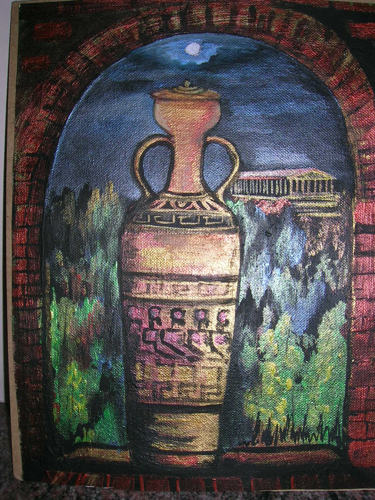 ...ανακαλύπτει θραυσματα απο παλια αγγεία και τα συναρμολογεί ΄...γαλήνια πορευεται στην απόλυτη σιωπή αναπολώντας τους Αιώνες